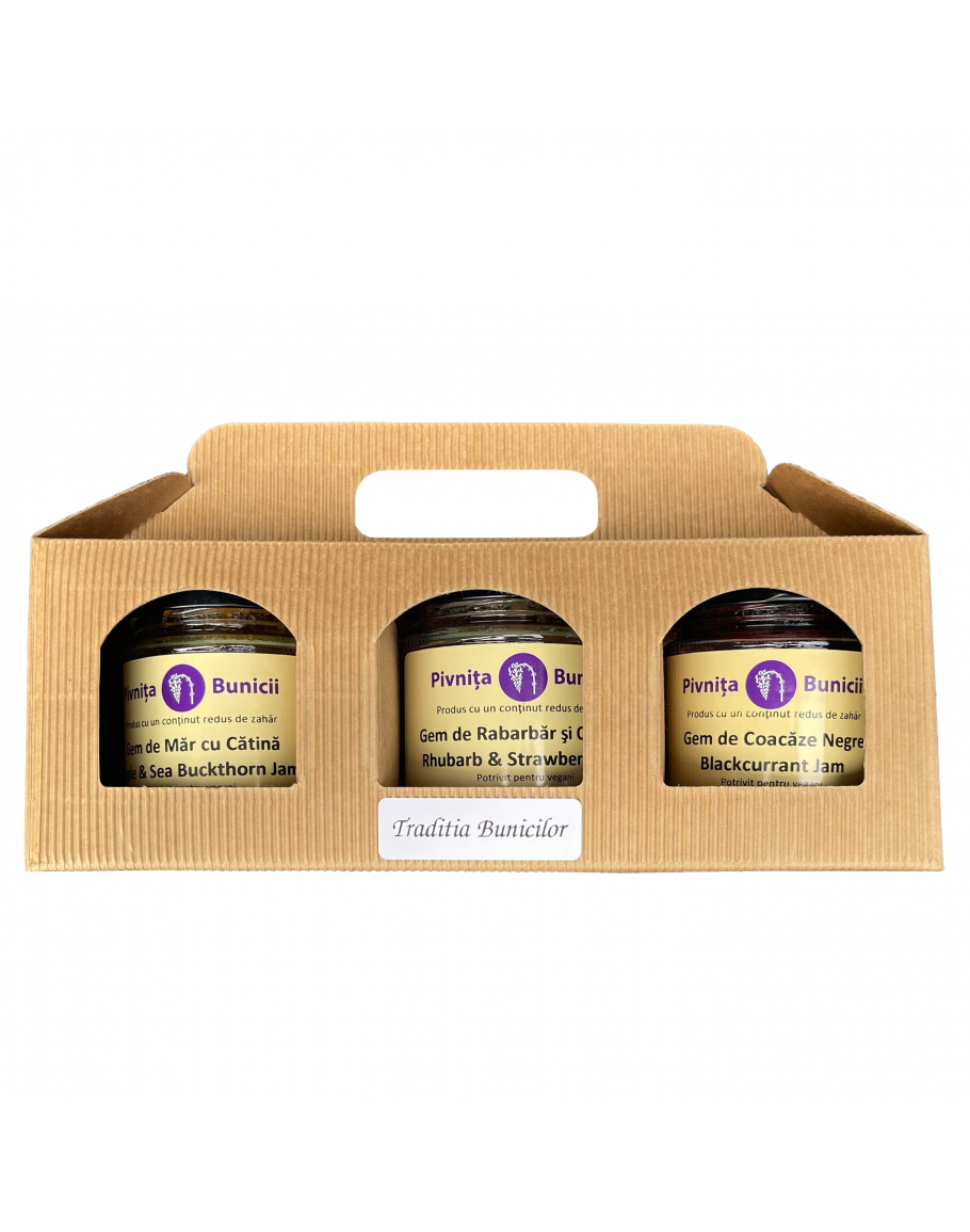 ”Tradiția Bunicilor” sunt o călătorie gustativă în inima tradiției culinare autentice a Saschizului. Încântați-vă papilele gustative cu trio-ul nostru excepțional de gemuri făcute cu dragoste și grijă de la Pivnița Bunicii. Fiecare borcan este plin de savoare și arome bogate, păstrând secretele rețetelor de familie transmise de generații.