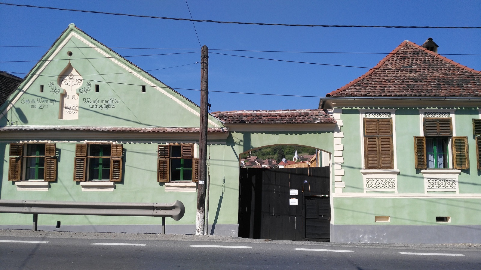 Restaurarea fatadei a fost efectuată în octombrie 2015. După îndepărtarea cu grijă a tencuielii brute aplicate în anii șaptezeci, am descoperit culoarea originală și o inscripție în limba germană, desene și caracteristici ascunse, toate datând din 1888, când reconstrucția a fost finalizată. Cuvintele provin dintr-o poezie scrisă de Simon Dach (1605-1659):